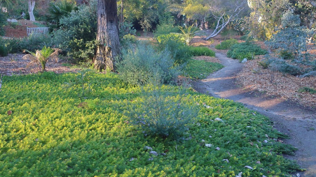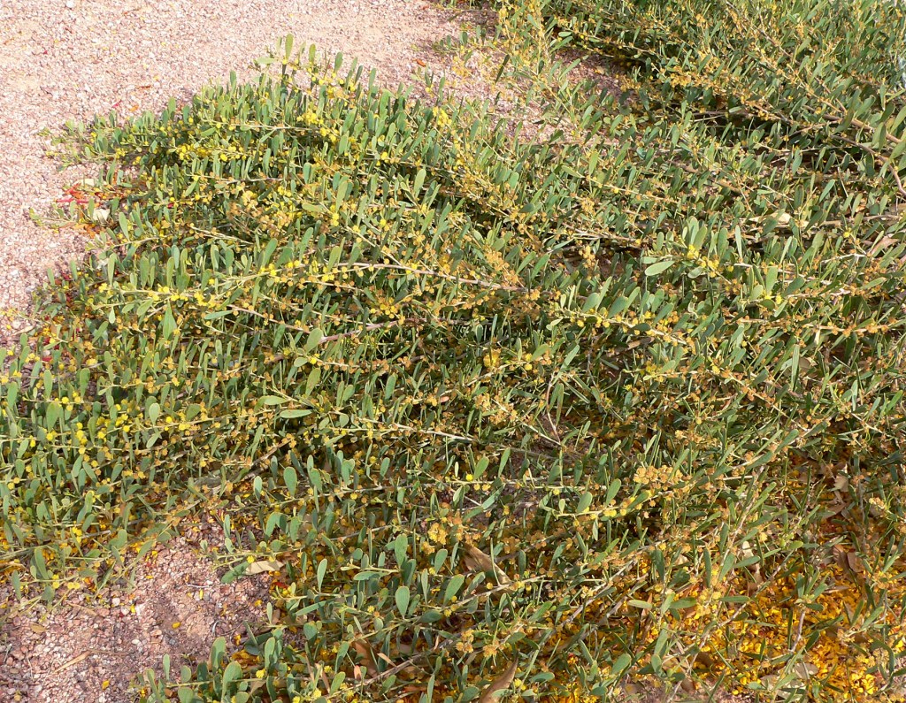 Acacia redolens, with its trailing form and low water needs, serves as an excellent groundcover choice in the low water desert garden, adding both visual interest and practicality to the landscape.