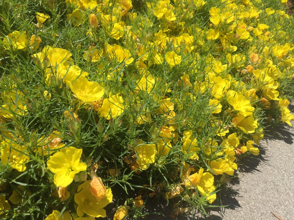 Oenothera stubbei, or Saltillo Evening Primrose, is a charming desert plant known for its bright yellow, cup-shaped flowers that open in the evening, adding a cheerful and fragrant touch to the garden landscape.
