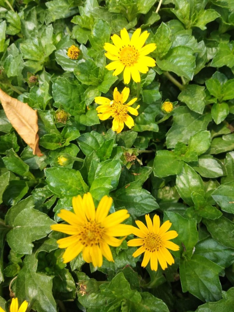 Sphagneticola trilobata, commonly known as Creeping-Oxeye or Wedelia, is a fast-spreading groundcover with small, daisy-like yellow flowers and bright green, lobed leaves; its vigorous growth and ability to cover large areas quickly make it a popular choice for creating low-maintenance and colorful groundcover carpets in sunny garden spaces.