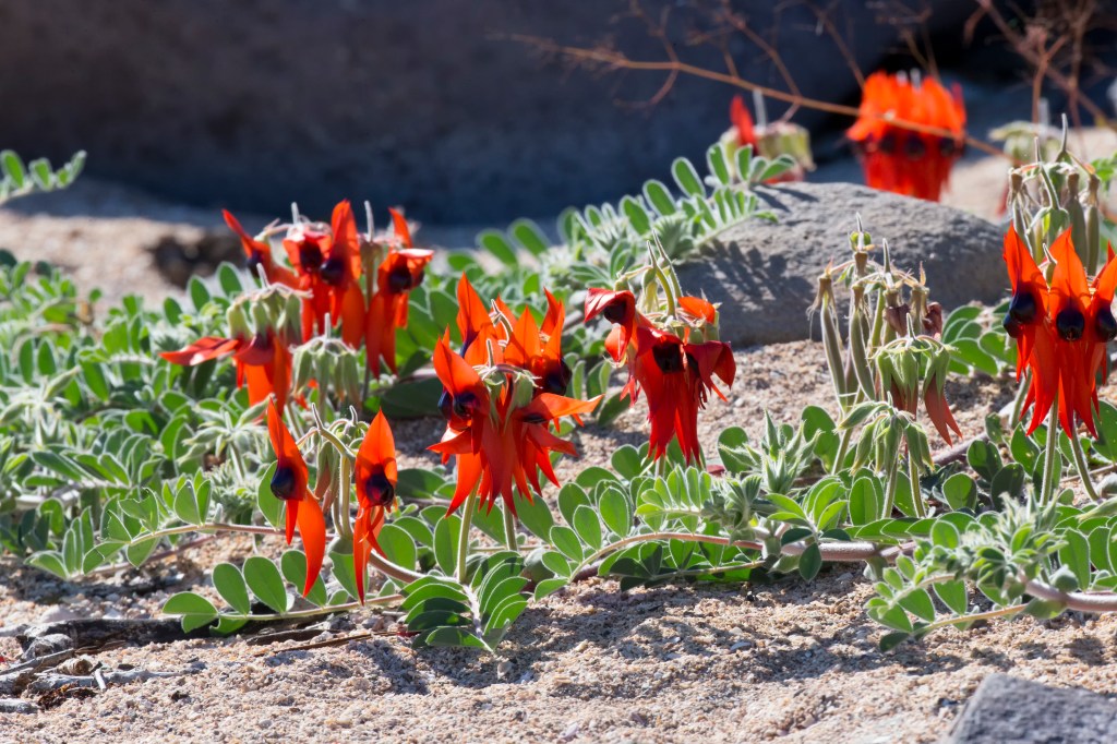 Swainsona formosa, also known as Sturt’s Desert Pea, is an iconic desert plant native to Australia, featuring striking blood-red, pea-like flowers with a distinctive black center; its unique appearance and cultural significance make it a sought-after choice for adding a touch of bold beauty and intrigue to arid landscapes.