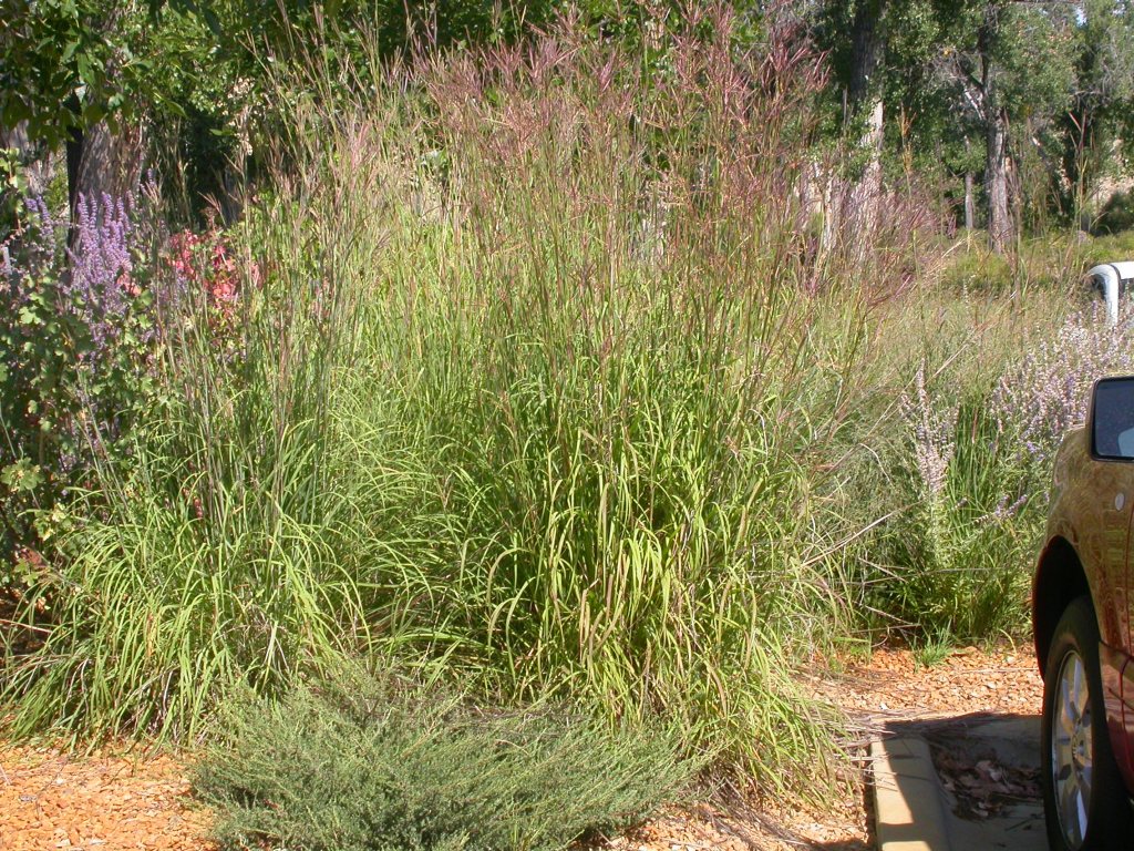 Big Bluestem (Andropogon gerardii) stands tall with its elegant, feathery seed heads and attractive blue-green foliage, adding a touch of native prairie charm and vertical interest to ornamental landscapes.