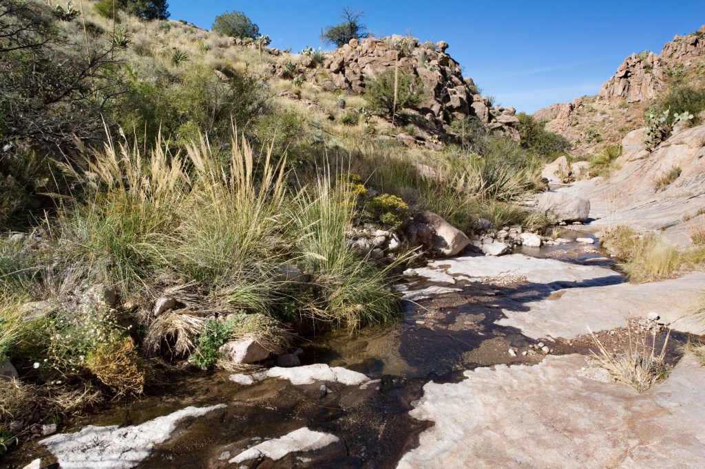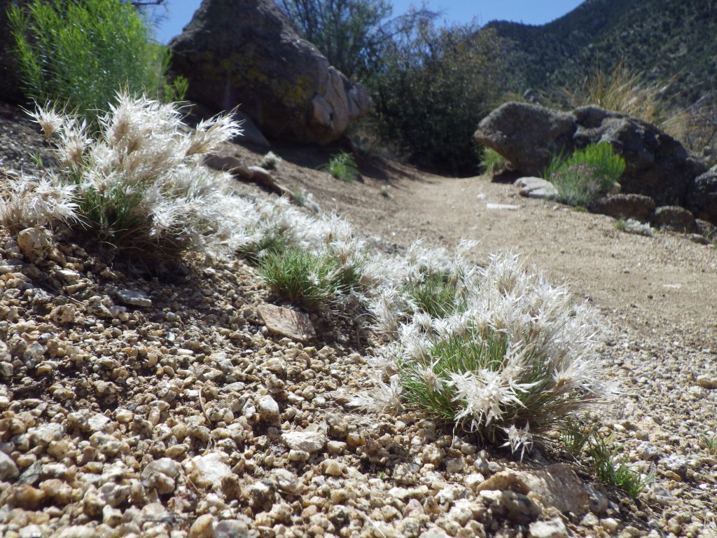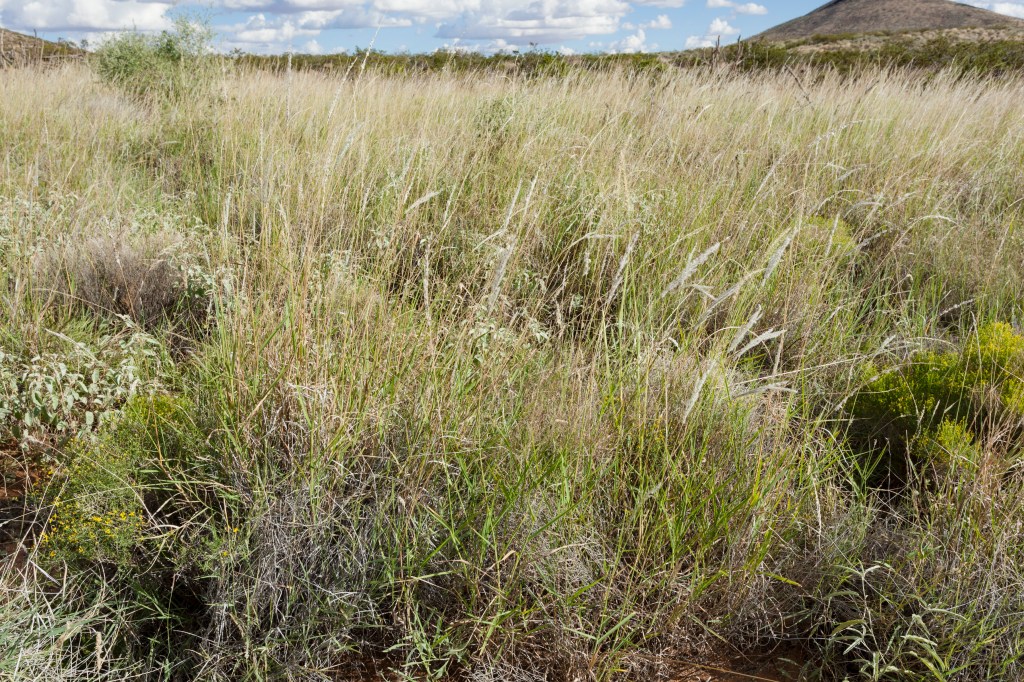 Arizona Cottontop (Digitaria californica) features airy, white seedheads resembling cotton tufts atop slender stems, creating a delicate and ethereal appearance in the landscape, and is a versatile addition to native gardens and naturalistic settings.