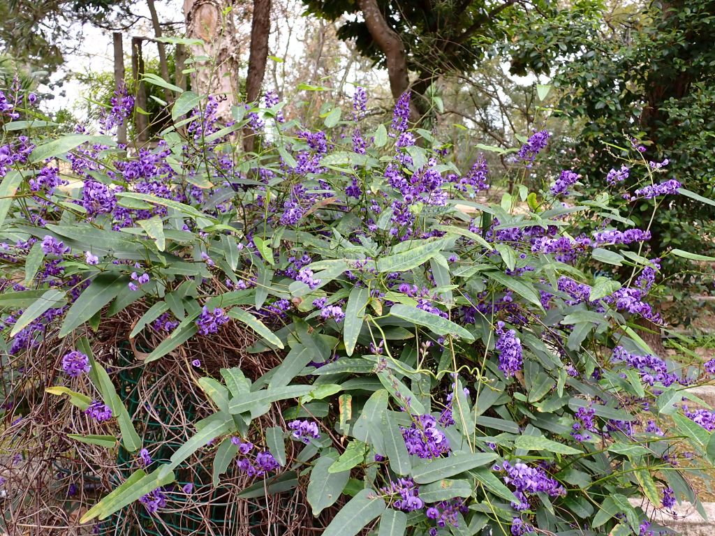 Hardenbergia violacea, commonly known as the Lilac Vine, is a graceful and charming plant known for its cascading sprays of delicate lilac or purple pea-shaped flowers. These blossoms create a stunning visual display against the plant’s dark green, lance-shaped foliage, making it a lovely addition to gardens and landscapes. The Lilac Vine’s vining and climbing habit adds a touch of elegance to trellises, fences, and walls, making it a versatile and attractive choice for vertical gardening in the desert southwest.